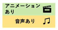 「アニメーションあり」・「音声あり」マークのいずれかがついているものは、スライドショーでお使いください。